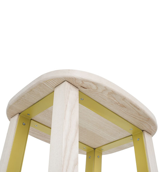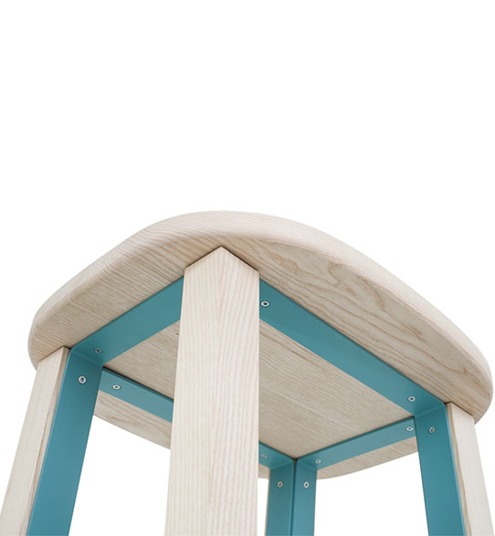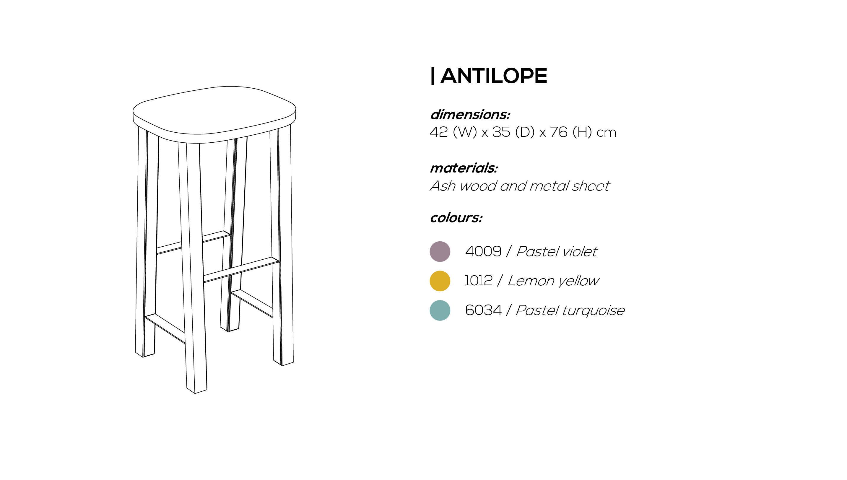 shows itself how it really is. “Antilope” is a fresh-faced stool, explaining how it is made: a mixture of wood and steel, sustaining each others, that visually expresses its purpose by its own design. Designed to be totally dissambled and delivered in a small package.